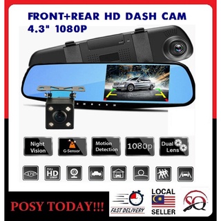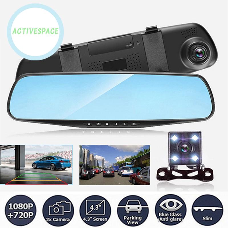 As 4 3 Hd 1080p Dual Lens Rear View Mirror Car Dvr Dash Cam Recorder Camera Shopee Malaysia